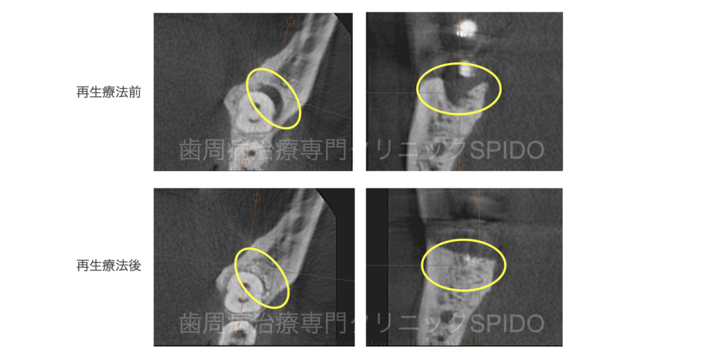 歯周組織再生治療を行うことで、このような骨欠損への回復が可能となります